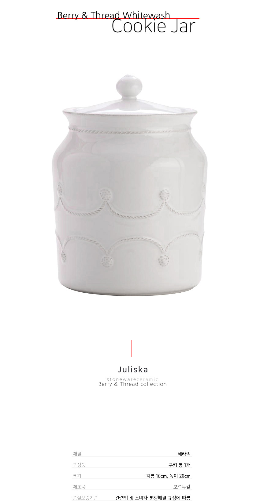 줄리스카 베리&뜨레드 화이트 쿠키 보관 함 (Berry & Thread Whitewash Cookie Jar)