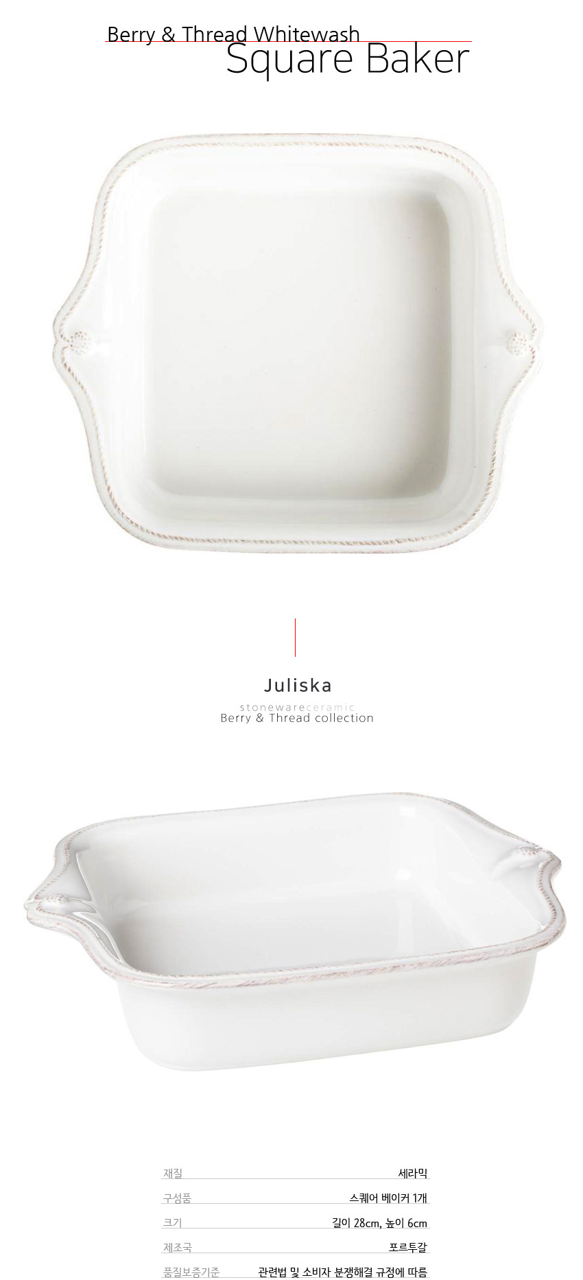 줄리스카 베리&뜨레드 화이트 28cm 정사각 베이커 (Berry & Thread Whitewash Square Baker)