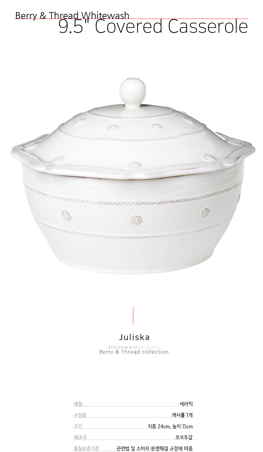줄리스카 베리&뜨레드 화이트 지름 24cm캐서롤 (Berry & Thread Whitewash 9.5" Cover)ed Casserole