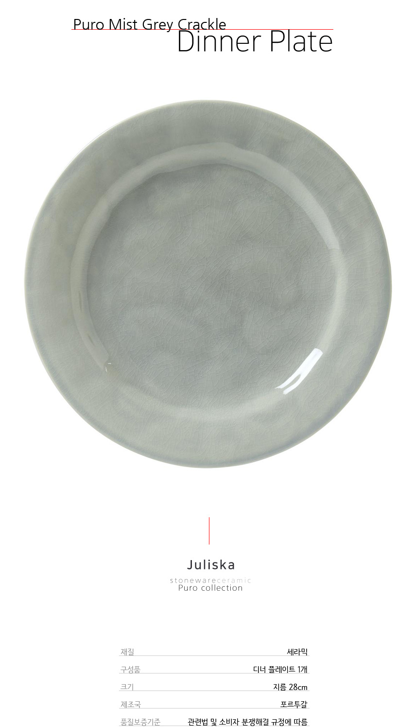 줄리스카 퓨로 그레이 지름 28cm 디너 플레이트 (Puro Mist Grey Crackle Dinner Plate)