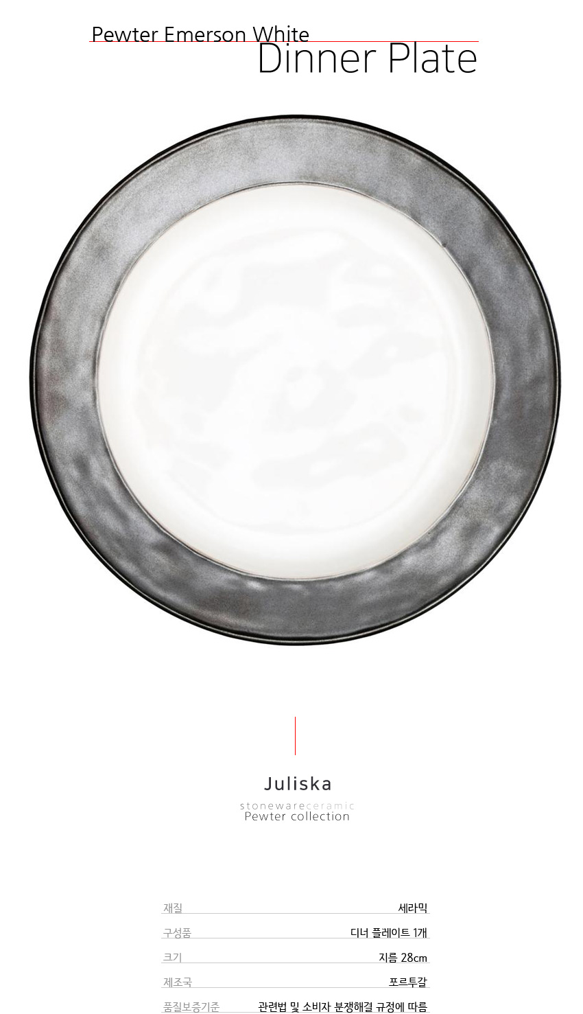 줄리스카 퓨터 에머슨 지름 28cm 디너 플레이트 (Pewter Emerson White Dinner Plate)