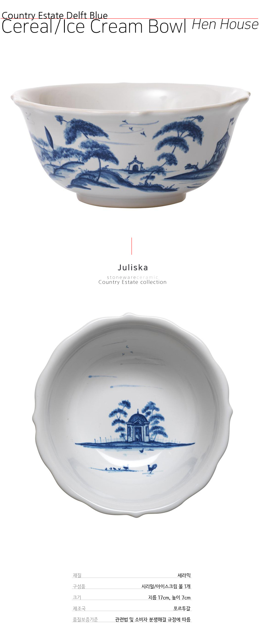줄리스카 컨트리 불루 씨리얼 볼 (Country Estate Delft Blue Cereal/Ice Cream Bowl 'Hen House')