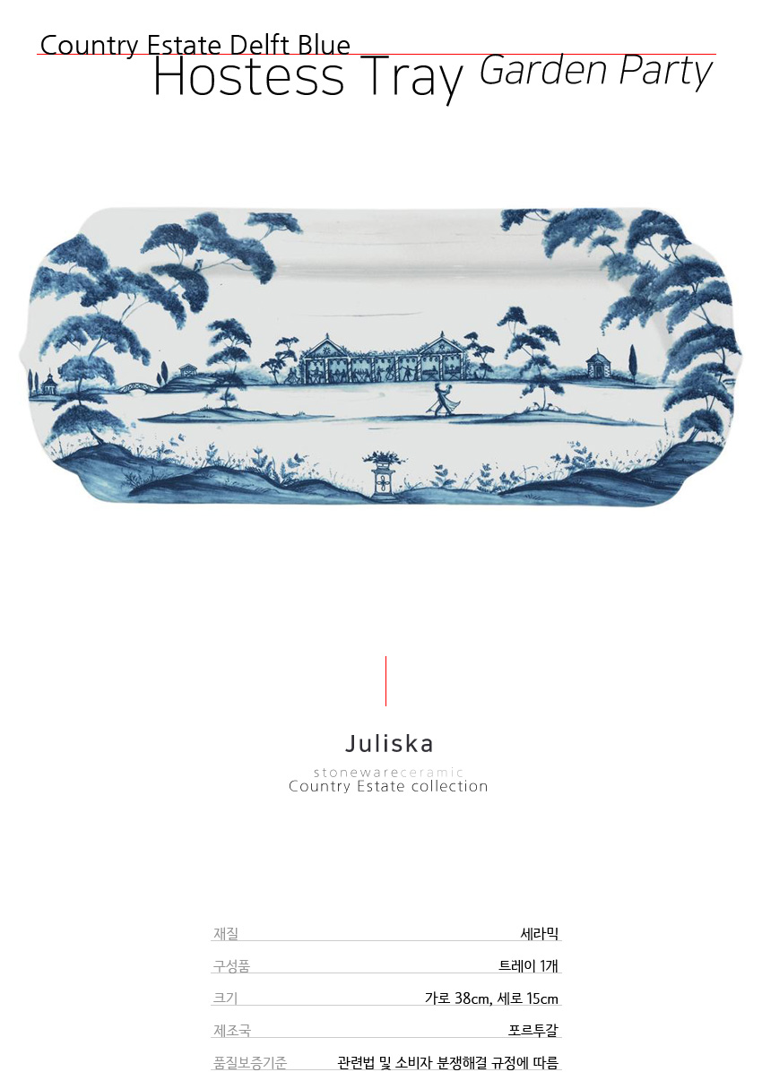 줄리스카 컨트리 불루 38cm 호스티스 트레이 (Country Estate Delft Blue Hostess Tray 'Garden Party')