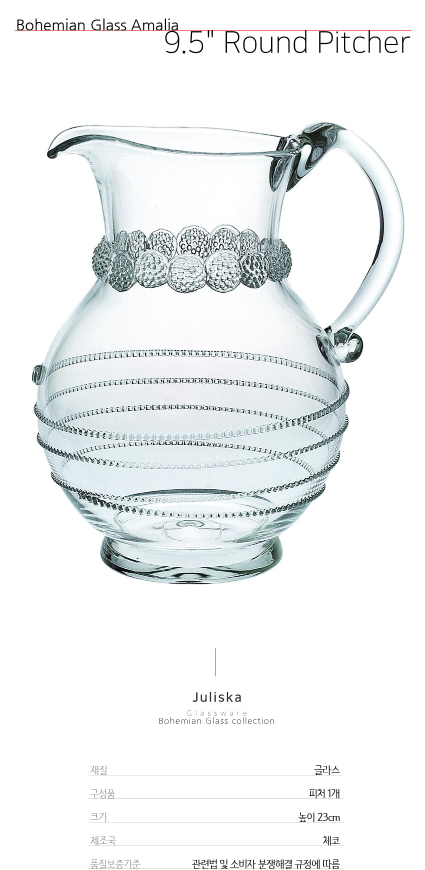 줄리스카 아말리아 라운드 글라스 피처 (Bohemian Glass Amalia 9.5" Round Pitcher)