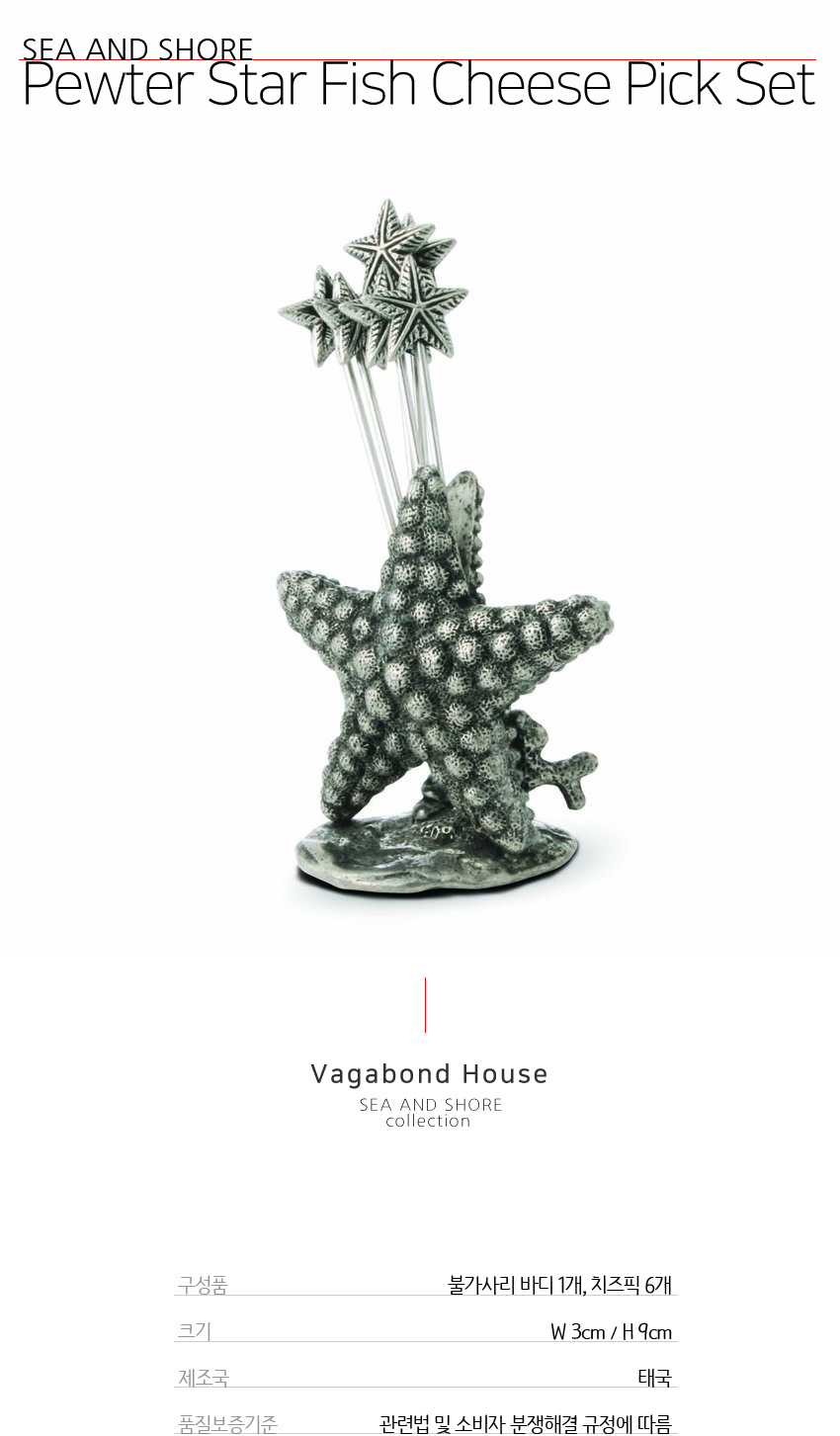 불사사리 치즈 픽 (Sea and Shore Pewter Star Fish Cheese Pick Set)