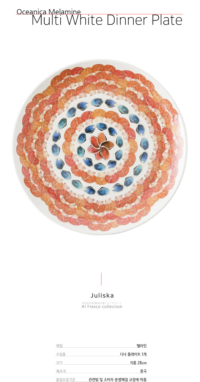 줄리스카 멜라민 디너 ( Oceanica Melamine Multi/White Dinner Plate)