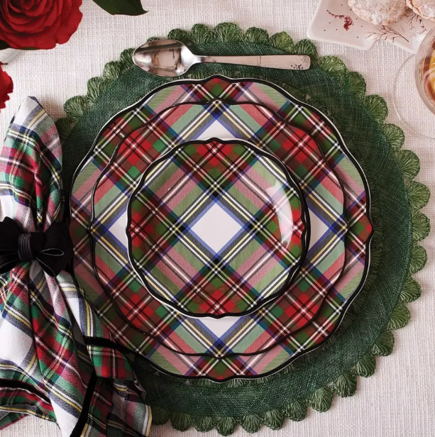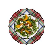 스튜어트 타탄 스톤웨어는 세련되고 심플한 디자인에 홀리데이 타탄 패턴이 각 접시에 담겨 있습니다.