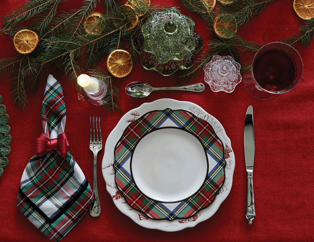홀리데이 타탄 패턴은 화이트 식기와 잘 어울립니다